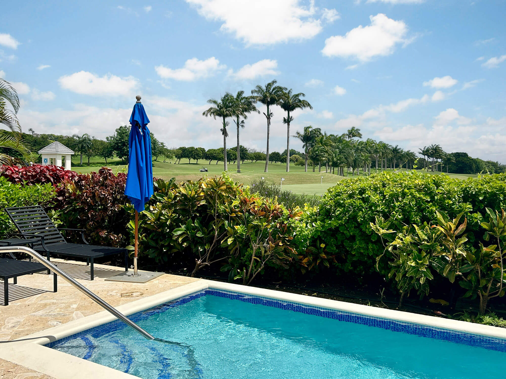 Relax and unwind by your private pool, surrounded by mature landscaping and enjoying panoramic views of the championship golf course and the sparkling Caribbean Sea.